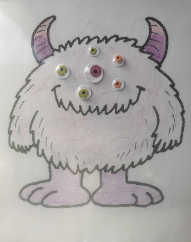 Cette fois le monstre à eu tellement peur qu'il a perdu toute sa couleur, il va falloir l'aider à la retrouver